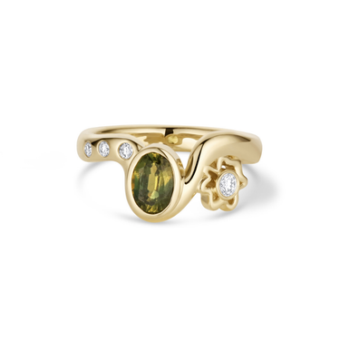 Custom Olive Green Sapphire Engagement Ring